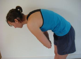 Support operated arm as shown. Lean forward so your arm comes away from your body. Gently rotate shoulder clockwise and anti-clockwise.